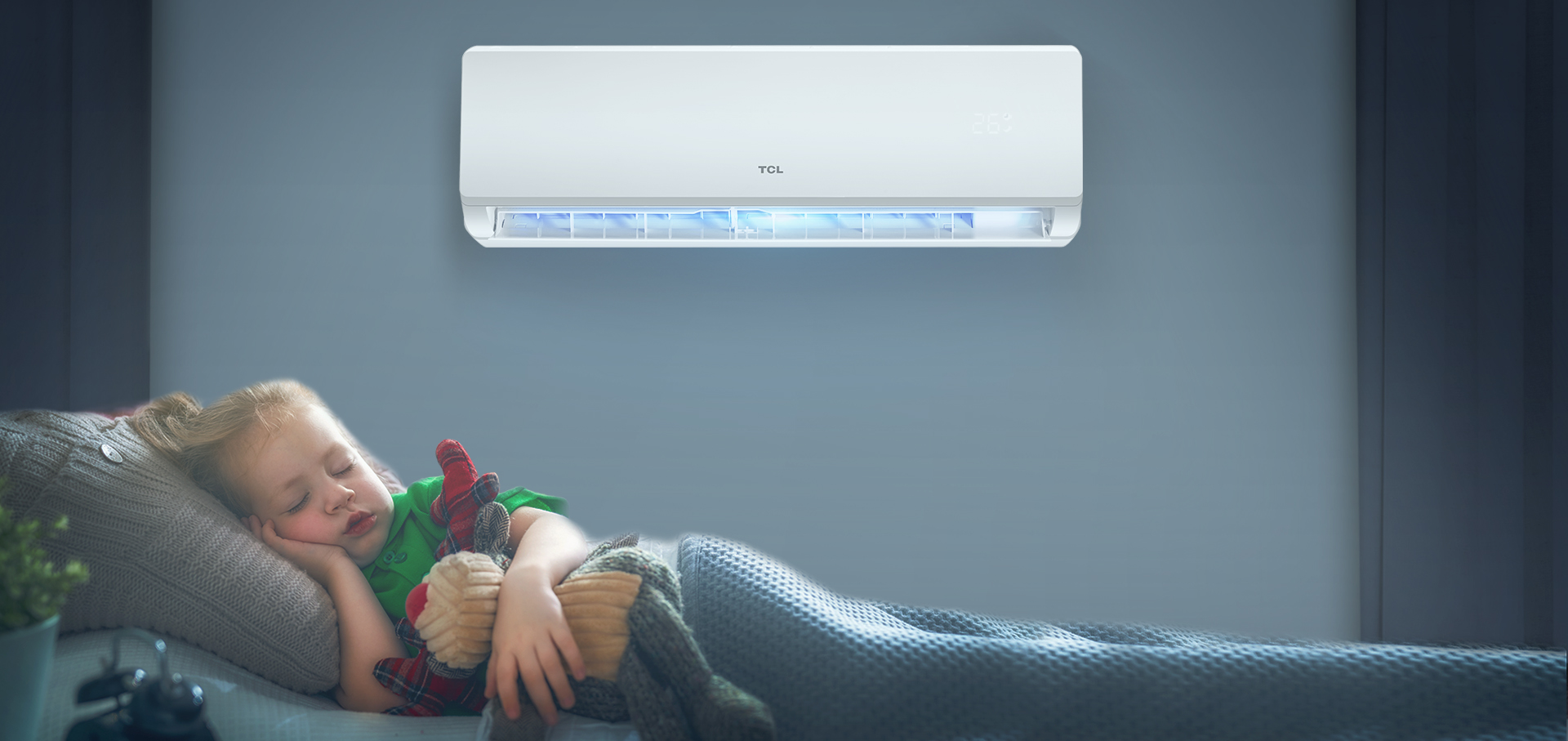 Controlul Wi-Fi al aparatelor de uz casnic TCL printr-o singură aplicație, Suport pentru controlul vocal bazat pe o rețea neuronală profundă. Modulul Wi-Fi nu este inclus în pachetul aparatului de aer condiționat (achiziționat opțional).Răcire confortabilă